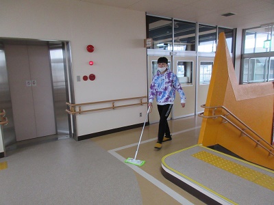 窓拭きもモップ掛けも、みんなで協力して取り組む姿がとても頼もしかったです。施設もキレイになりました。