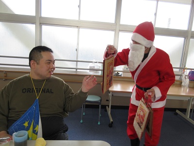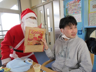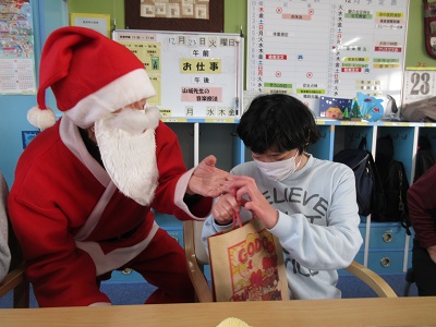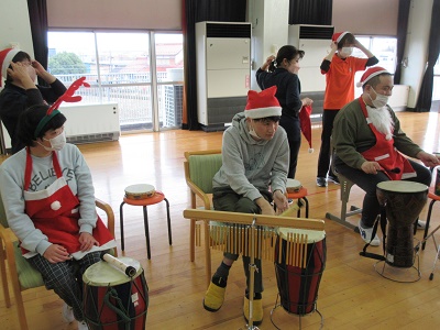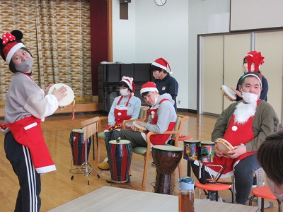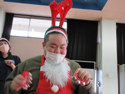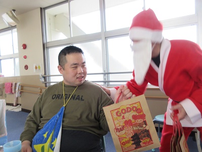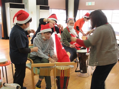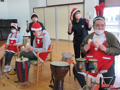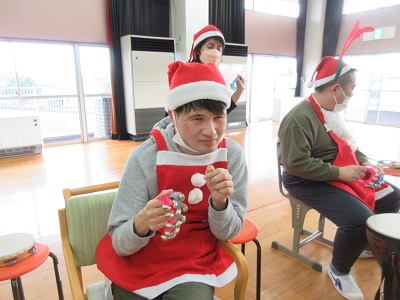 サンタ姿での音楽療法は大盛り上がりでした。クリスマス会では、サンタさんからプレゼントを貰ったときの笑顔がとても印象的でした。