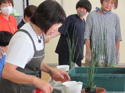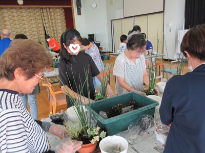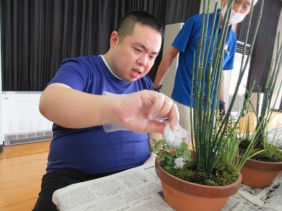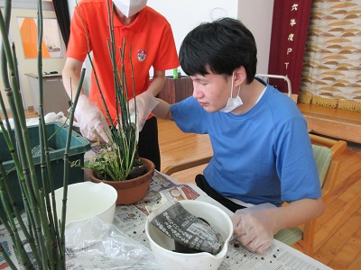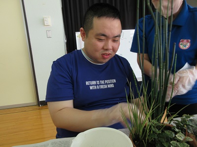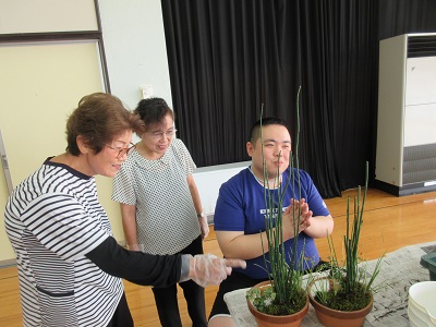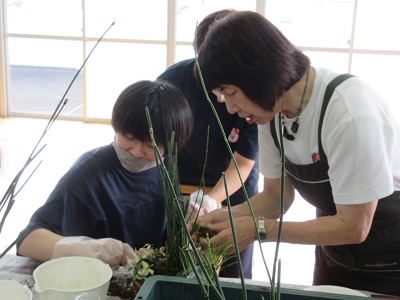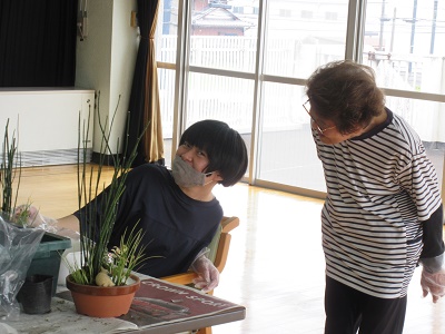 令和6年度 生花教室を実施しました。 12月18日(水)もちのき園、2階の遊戯室にてクリスマス用と正月用の生花をつくりました。今回は、寄せ植えタイプと生花タイプの2種類があり。好きな方を選んで作りました。
